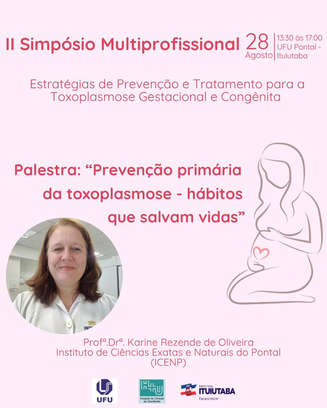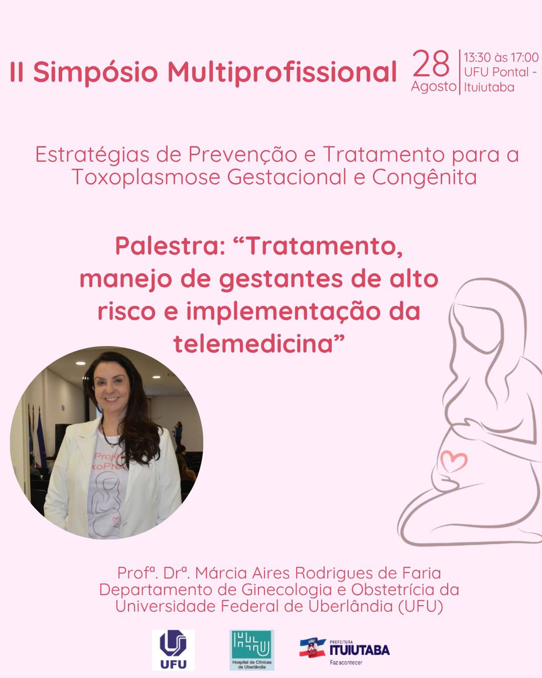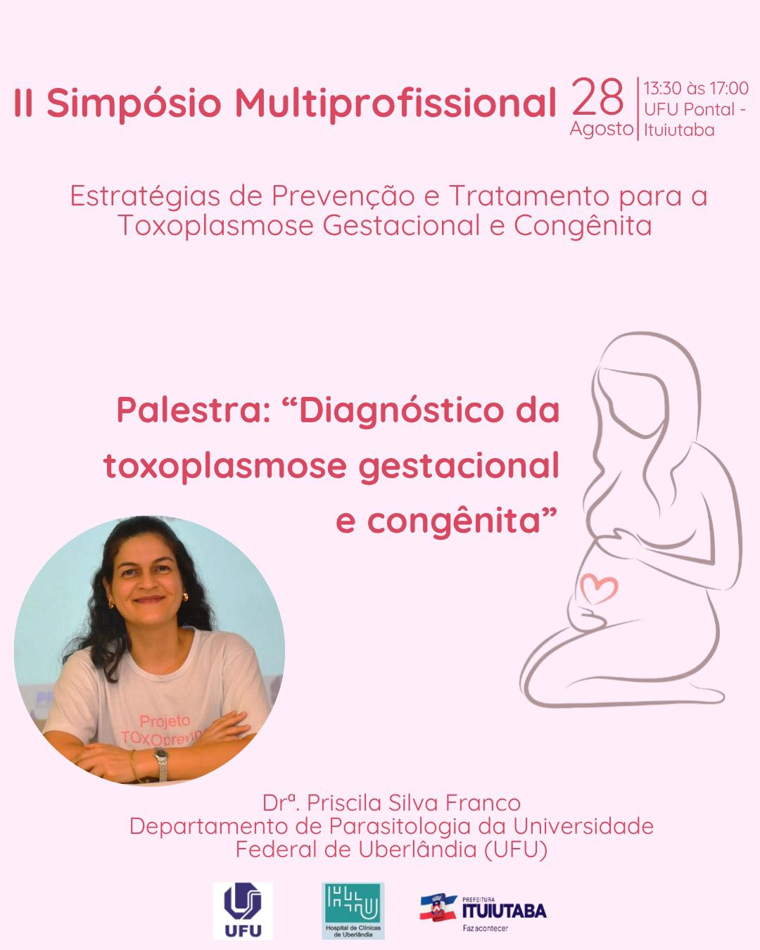 Na programação estão previstas palestras com um representante do Ambulatório de Ginecologia e Obstetrícia do Hospital de Clínicas de Uberlândia da Universidade Federal de Uberlândia (HCU-UFU), de pesquisadores especialistas em toxoplasmose da UFU. Contamos com o apoio da UFU, ICENP-UFU, HCU-UFU, da Prefeitura Municipal de Ituiutaba, Unimed Ituiutaba, Garden Avenida e DNAse Laboratório de Análises Clínicas e Biologia Molecular.